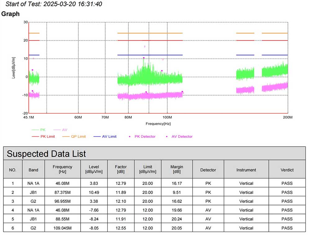 · 整改完成后,再次在 3 米法電波暗室按照相同標準進行測試,834MHz 頻點垂直極化方向的峰值明顯改善,比整改前降低了 20+dB,滿足標準限值要求。連續測試 5 次,該頻點的輻射值均穩定在 6-8dBμV/m 之間,整改效果顯著。